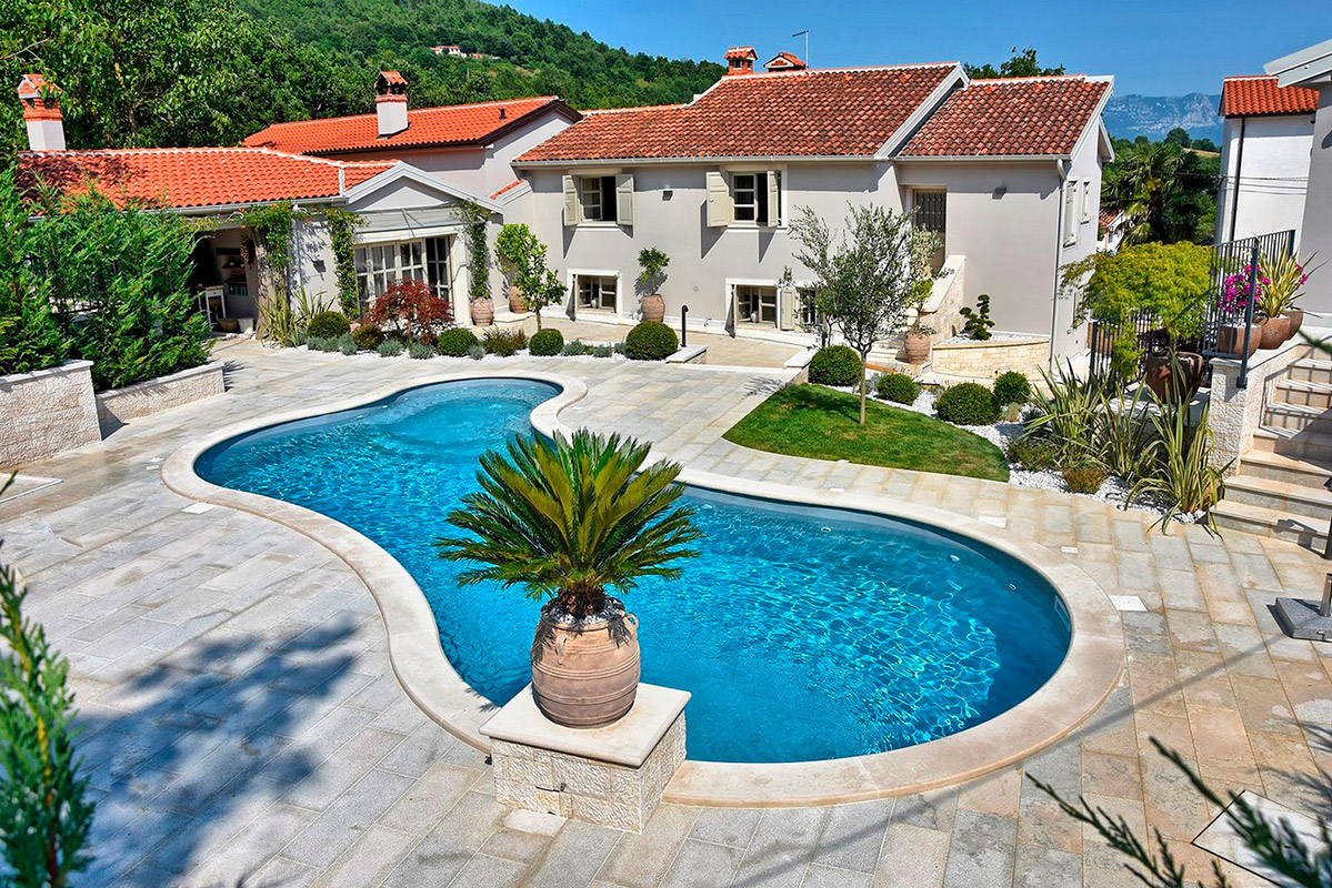 Discover the beauty of life on the sunny hills of Istria, enjoying a glass of wine by the pool while soaking in the warm rays of the sun